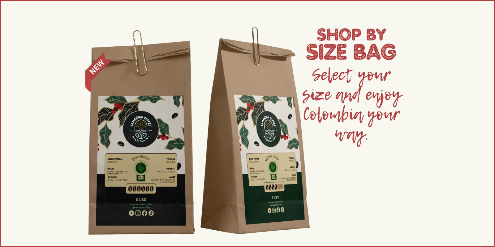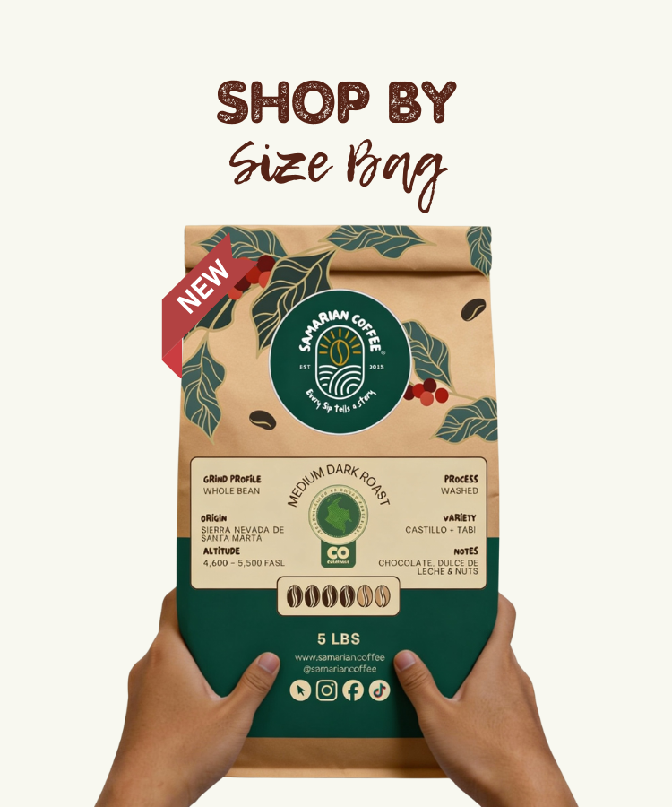 Available in 12oz, 2lb, and 5lb. Pick your favorite roast and experience Colombia your way.